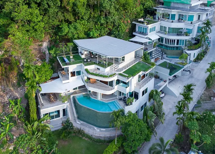 Die 18-Zimmer- Villa Beyond-Namaste 16 Bedroom Fully Staffed Seaview Villa Phuket liegt etwa 6 km vom Themenpark Phuket FantaSea entfernt und bietet einen Esstisch und Essbereiche im Freien auf einer Terrasse für einen angenehmen Aufenthalt. Diese Villa in Phuket mit Blick aufs Meer lädt Gäste ein, den Bang Tao Strand zu besuchen (circa 10 Minuten mit dem Auto von der Unterkunft entfernt).